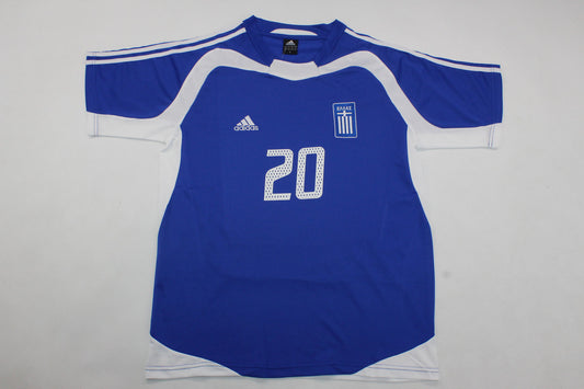 Giorgos Karagounis Greece EURO 2004 Final Blue Retro Home Kit Jersey Soccer Shirt