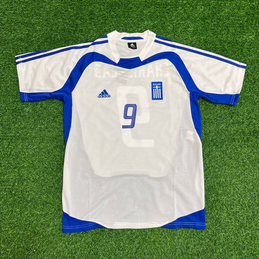 Angelos Charisteas Greece EURO 2004 Final Blue Retro Home Kit Jersey Soccer Shirt