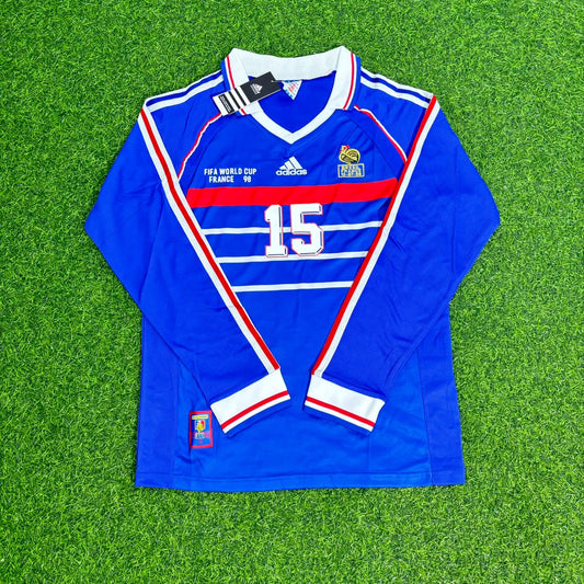 Lilian Thuram France 1998 World Cup Retro Long Sleeve Football Jersey Maillot Trikot Soccer Shirt