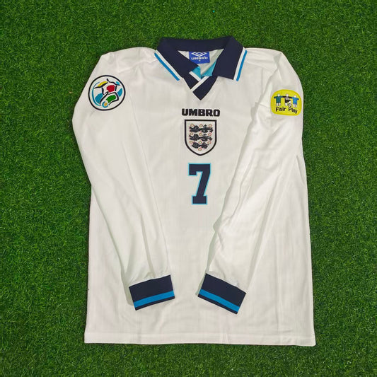 David Beckham England 1996 Long Sleeve Retro Football Jersey