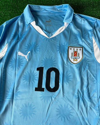Relive Uruguay’s remarkable 2010 World Cup campaign with the iconic #7 Edinson Cavani retro jersey. This kit captures the relentless energy and goal-scoring instinct of “El Matador,” who played a key role in Uruguay’s unforgettable run to the semi-finals in South Africa. Customize your jersey with other key players from the 2010 squad, including Luis Suárez, Diego Forlán, and Fernando Muslera, to make it truly your own.