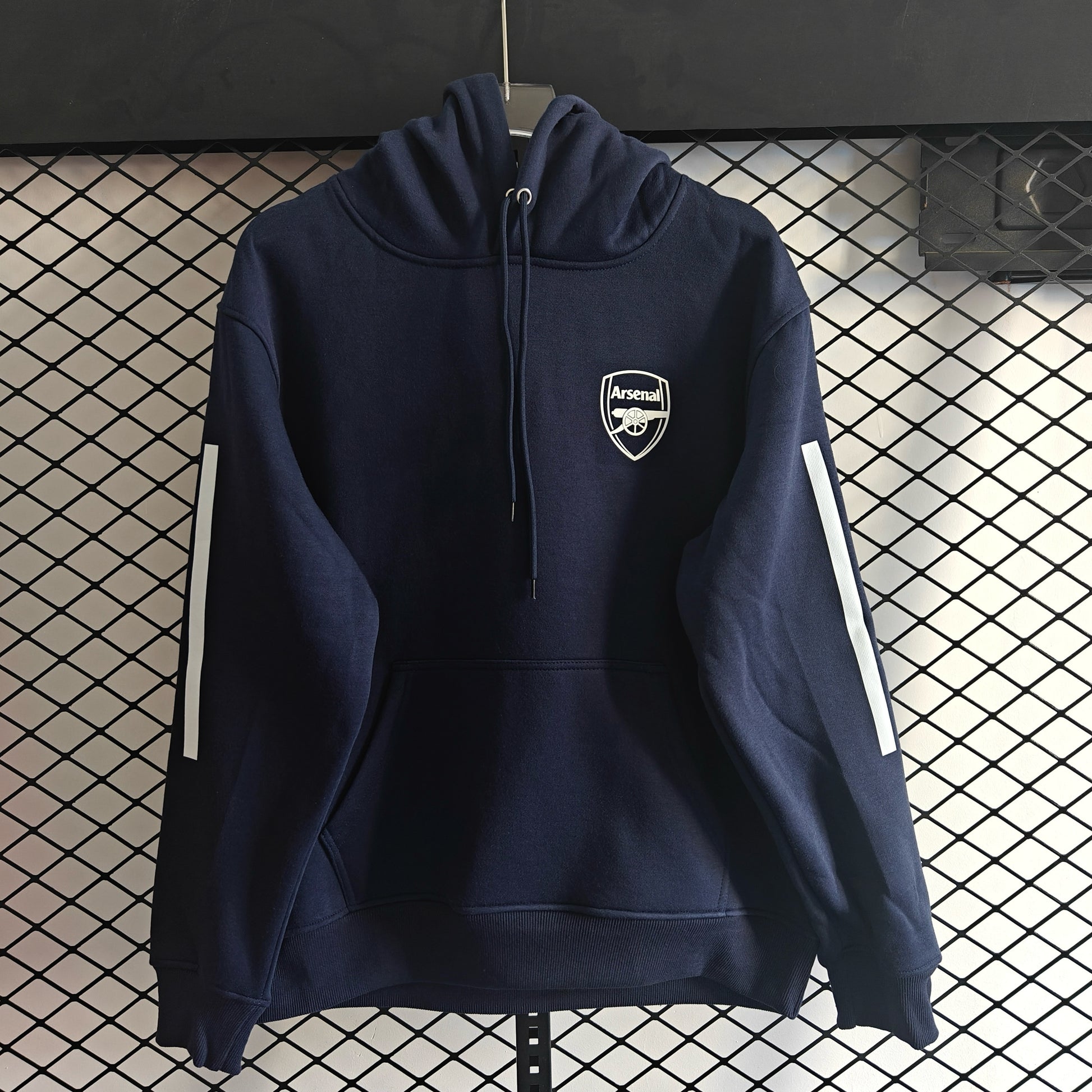 Arsenal Winter-Fleece-Hoodie – Premium-Fußball-Kapuzenpullover. Zeigen Sie Ihre Verbundenheit zum legendären Rot von Arsenal mit diesem schweren Winter-Fleece-Hoodie, der auf Komfort und Langlebigkeit ausgelegt ist. Gefertigt aus weichem, angerautem Fleece-Material, bietet er außergewöhnliche Wärme in den kalten Monaten und besticht gleichzeitig durch seine elegante, taillierte Silhouette. Die Kängurutasche und die verstellbare Kapuze mit Kordelzug sorgen für praktische Funktionalität, während das gestickte Arsenal-Wappen Ihre Treue zu den Gunners unterstreicht. Perfekt für Spieltage, Freizeit oder als zusätzliche Schicht unter Ihrer Lieblingsjacke. Ein zeitloses Stück für Sammler und Fans, die Wert auf Qualität und Stil legen.