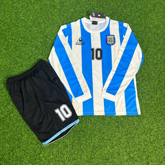 Diego Maradona Argentina 1986 World Cup Retro Long Sleeve KIDS Football Jersey Kit