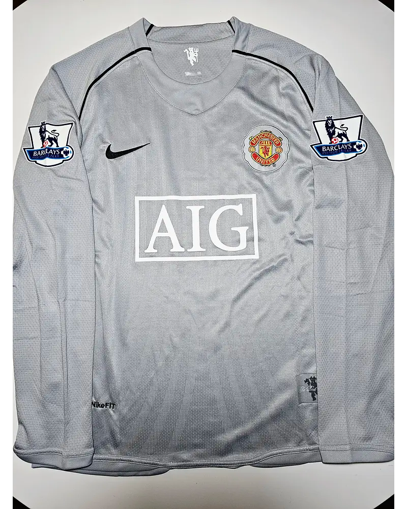 Edwin van der Sar Manchester United Goalkeeper Grey Retro Long Sleeve Jersey Maglia