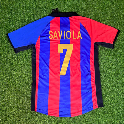 Javier Saviola 7 – Barcelona 2001/2002 Home Retro Kit Jersey Trikot Maillot Soccer Shirt