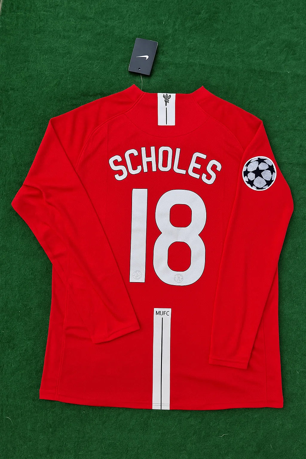 Celebrate Paul Scholes’ legendary 2008 Champions League Final season with this Manchester United retro long sleeve football jersey.