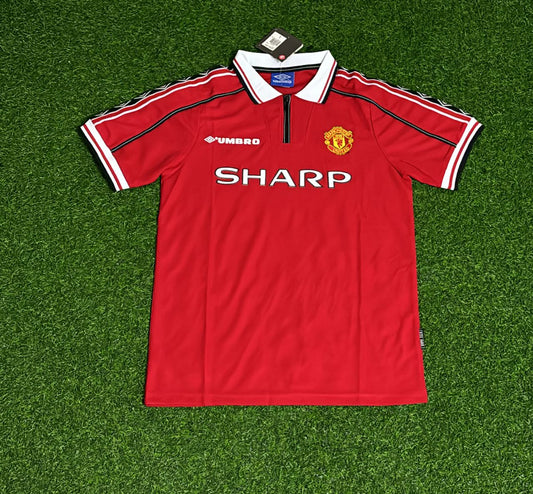 Teddy Sheringham Manchester United 1999 Red Retro Jersey Maillot Trikot Maglia Soccer Shirt