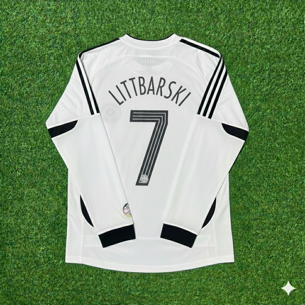 Maillot de football rétro blanc à manches longues Pierre Littbarski Allemagne Coupe du Monde Maillot de football rétro à manches longues Pierre Littbarski Allemagne