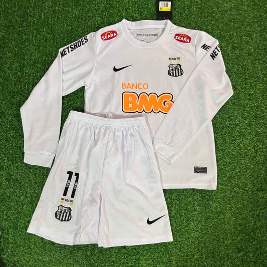 Neymar Jr Santos FC 2013 White Long Sleeve Kids Retro Football Jersey Set Soccer Shirt