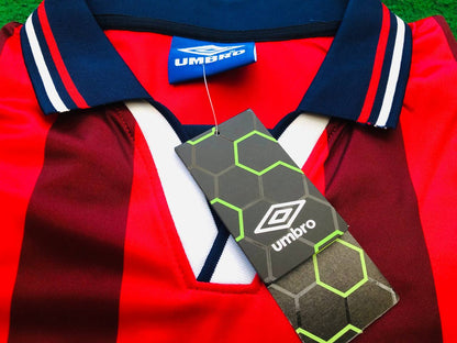 Experience the glory days of David Beckham and English football with our England Red Retro Football Jersey. Made with the highest quality materials, this jersey will transport you to the field with its iconic design and stylish fit. Represent your love for the game and show off your passion for the beautiful game.
