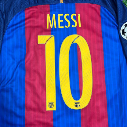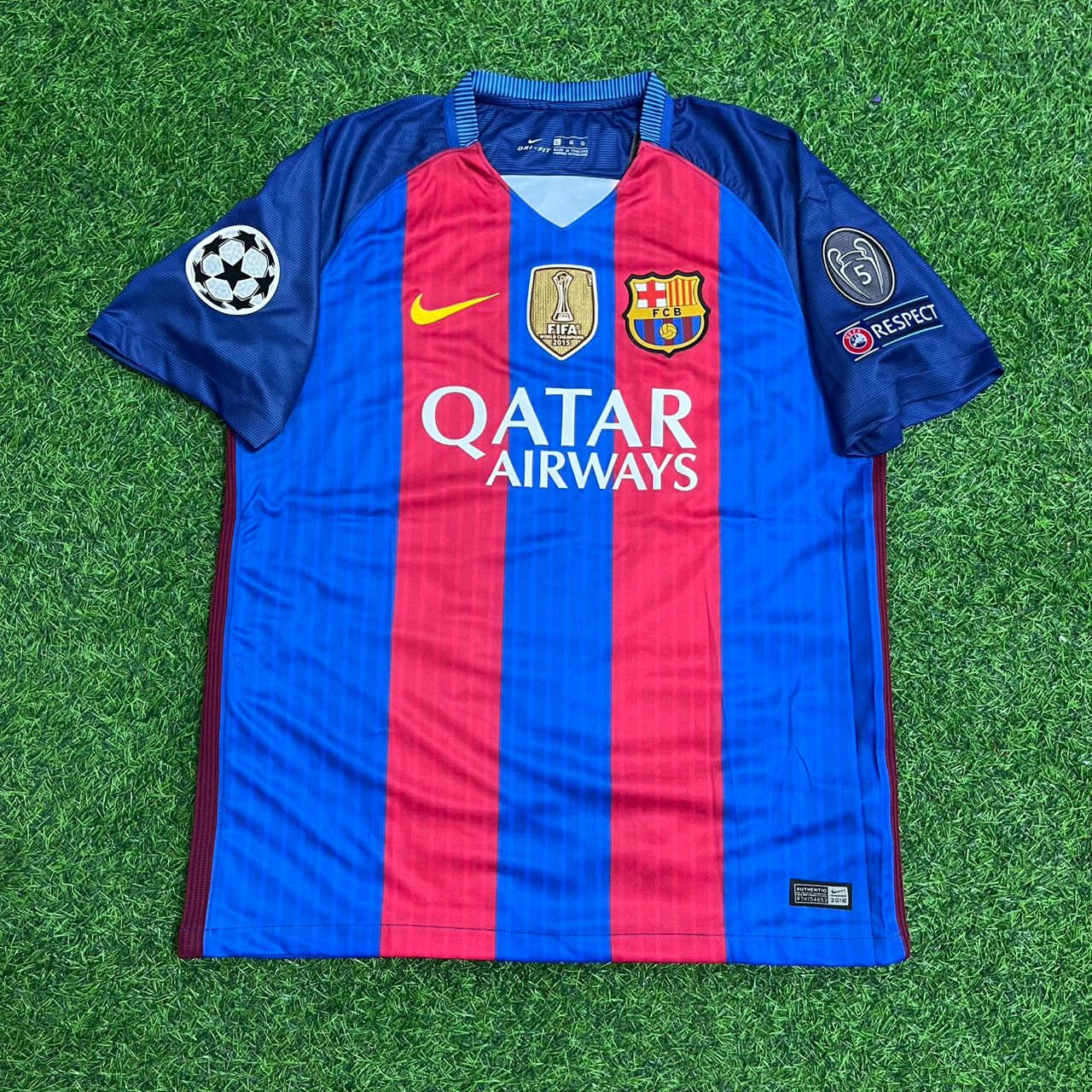 Relive the brilliance of the MSN era with this Lionel Messi Barcelona 2016–2017 Home Retro Football Jersey Kit. Featuring the traditional Blaugrana stripes, this shirt was worn during Messi’s unforgettable performances in La Liga and Europe. Premium retro quality for true Culés and collectors.