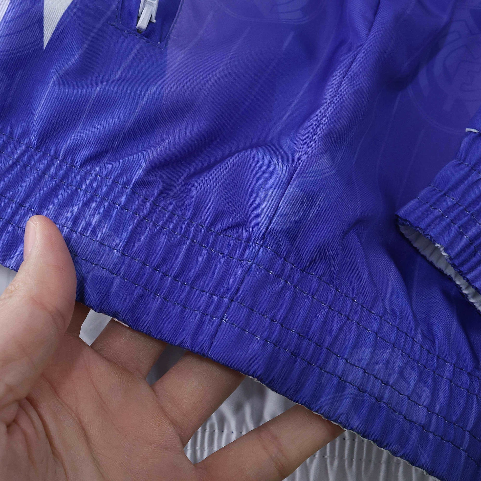 # Madrid Retro 1996-97 Both Sides Windbreaker Capture the essence of '90s football style with this authentic Madrid windbreaker. Featuring reversible both-sides construction, you get two distinct looks in one versatile piece—perfect for layering over match day kits or casual wear. The retro 1996-97 design celebrates a legendary era with period-accurate details and premium fabric that moves with you. Lightweight and packable, it's ideal for fans who value heritage aesthetics and practical versatility. A timeless addition to any football wardrobe.
