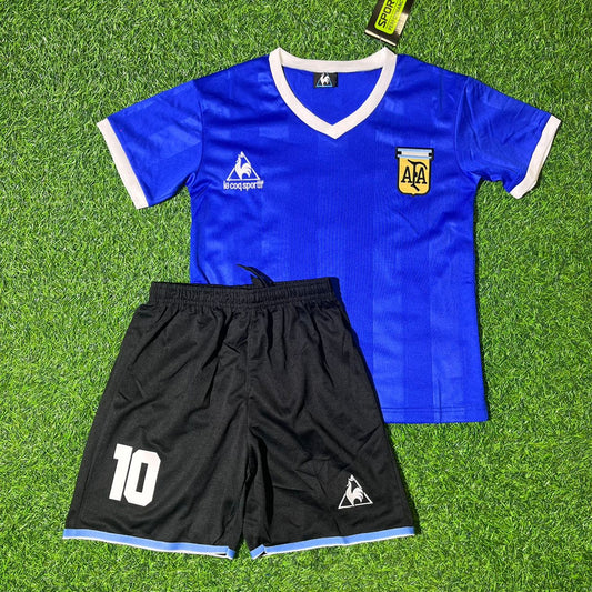 Diego Maradona Argentina 1986 World Cup Final Blue Kids Retro Football Jersey Kit