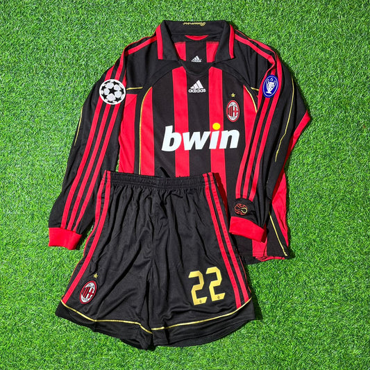 Kaká Leite AC Milan 2006/07 Retro Long Sleeve Kids Football Jersey Kit