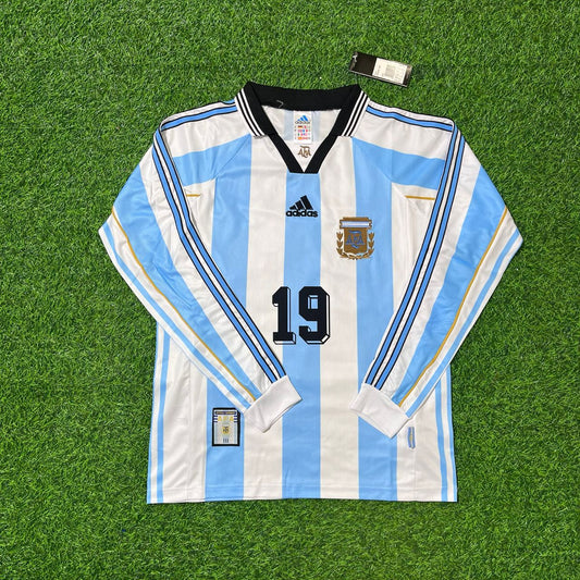 Hernan Crespo Argentina 1998 World Cup White Long Sleeve Retro Football Jersey Kit