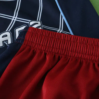 ✅ Ikonisches Design: Klassisches rot-weiß gestreiftes Trikot mit blauen Akzenten, im Stil des Auswärtstrikots von Atlético Madrid der Saison 2004/05.