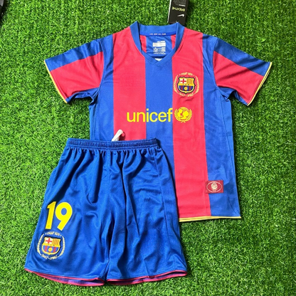 Lionel Messi Barcelona 07/08 Home Kids Kit – Kit Jersey for Children – | KinderTrikot | Maillot Enfant Soccer Shirt