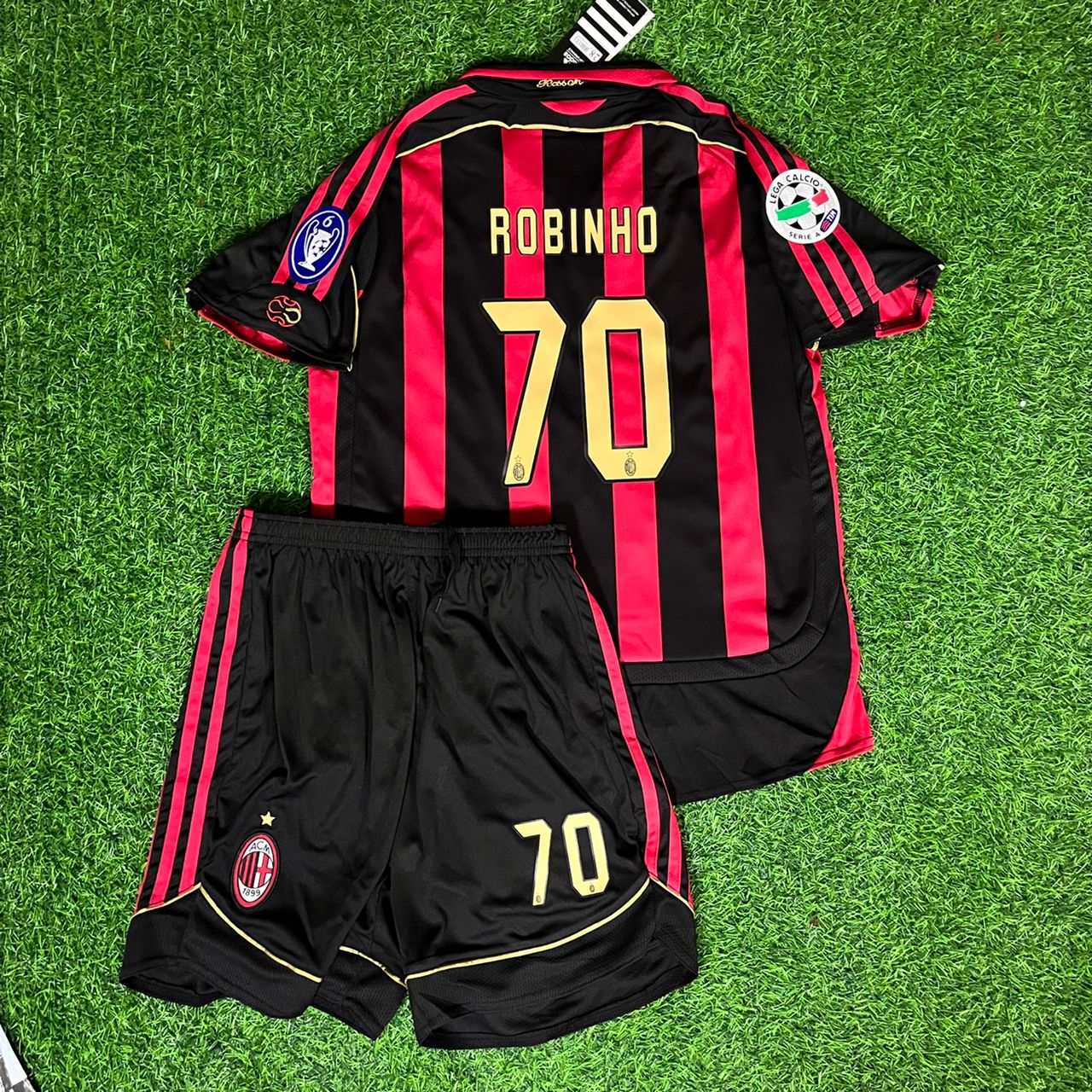 Robinho 70 AC Milan 2007 Retro Kids Kit Set Kindertrikot Maillot Enfant Kindertrui Soccer Shirt
