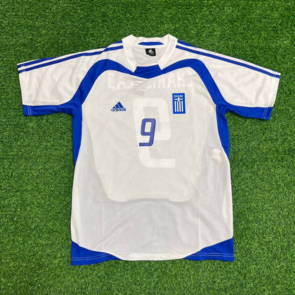 Relive Greece’s historic triumph at EURO 2004 with the Angelos Charisteas Retro Jersey. This blue home shirt pays tribute to the unforgettable final in Lisbon, where Charisteas scored the decisive header against Portugal to secure Greece’s first-ever European Championship. Designed with the classic retro styling, it captures the spirit of resilience and unity that defined one of the greatest underdog stories in football history. The lightweight material ensures comfort, while the iconic number 9 on the back reminds fans of that legendary night. Perfect for collectors and passionate fans who want to celebrate an extraordinary football fairy tale.