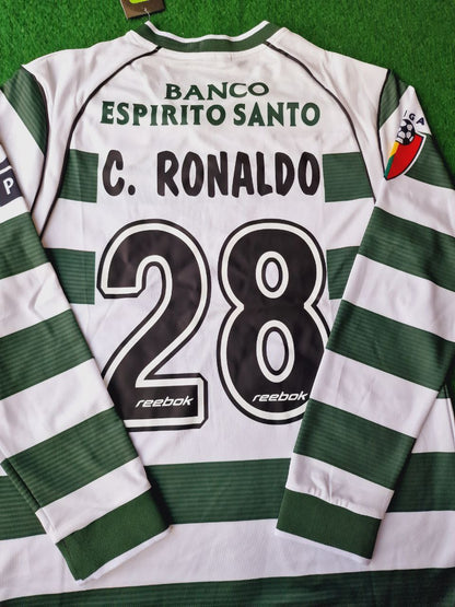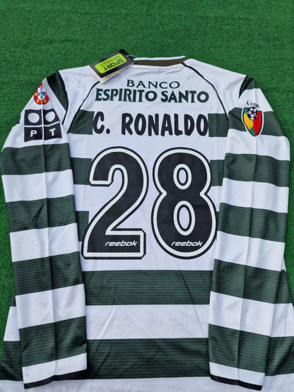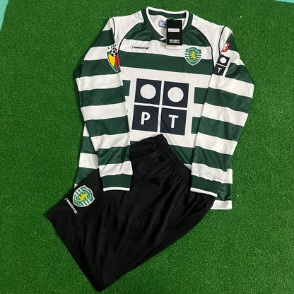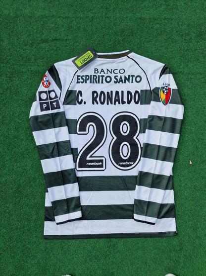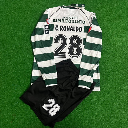 Cristiano Ronaldo Sporting Lisbon First Season Long Sleeve Retro Kids Jersey Soccer Shirt