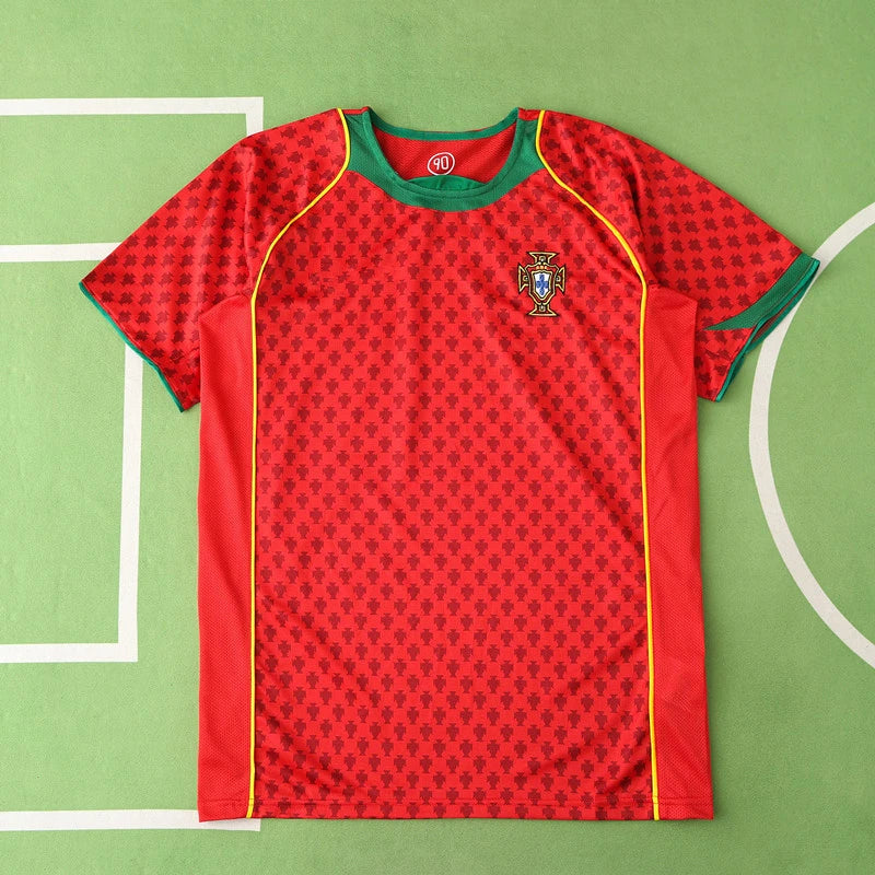 Score a goal in style with the Portugal 2004 Season Home Red Retro Jersey Trikot! This retro jersey will take you back to Portugal's 2004 season and its memorable moments. Made with high-quality fabric, it offers comfort and durability for all your soccer games. Forever a fan favorite, this jersey is a must-have for any football enthusiast!