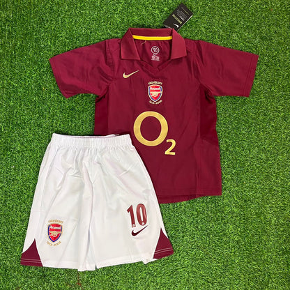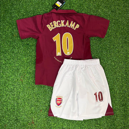 Dennis Bergkamp Arsenal 2005/06 Home Burgundy Kids Kit – Kit Jersey for Children – | KinderTrikot | Maillot Enfant Soccer Shirt
